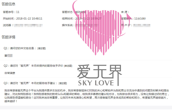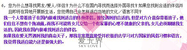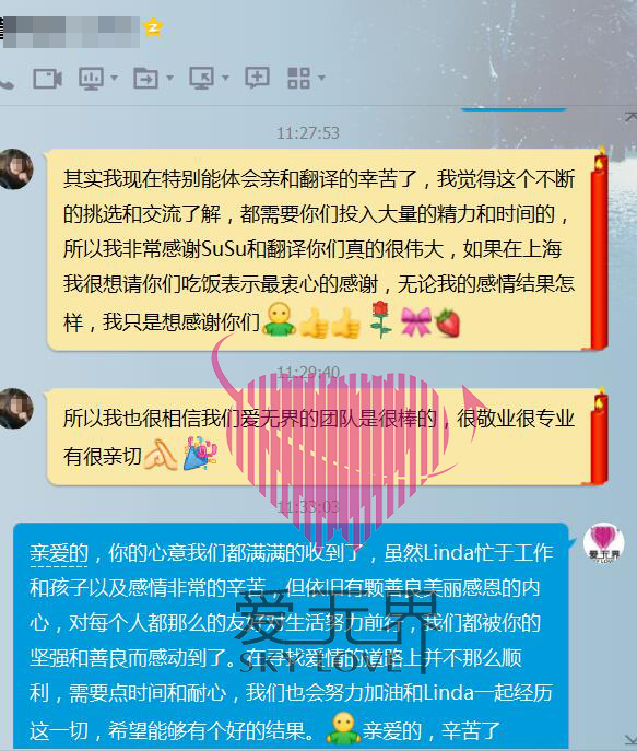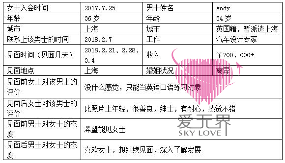 Linda来自上海,今年36岁,在一家餐饮公司任职管理和财务方面的工作,在工作上遇到许多形形色色的顾客,来自不同的地域,有着不一样的文化。每次与他们交谈,Linda都会感觉豁然开朗,丰富了人生阅历,从中也对西方文化有了一定的认知。2017年7月25日加入阿里红娘,选择跨国交友,在入会问题上,Linda的回答是这样的: