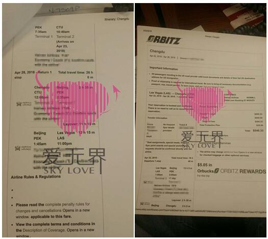男士发来的机票信息