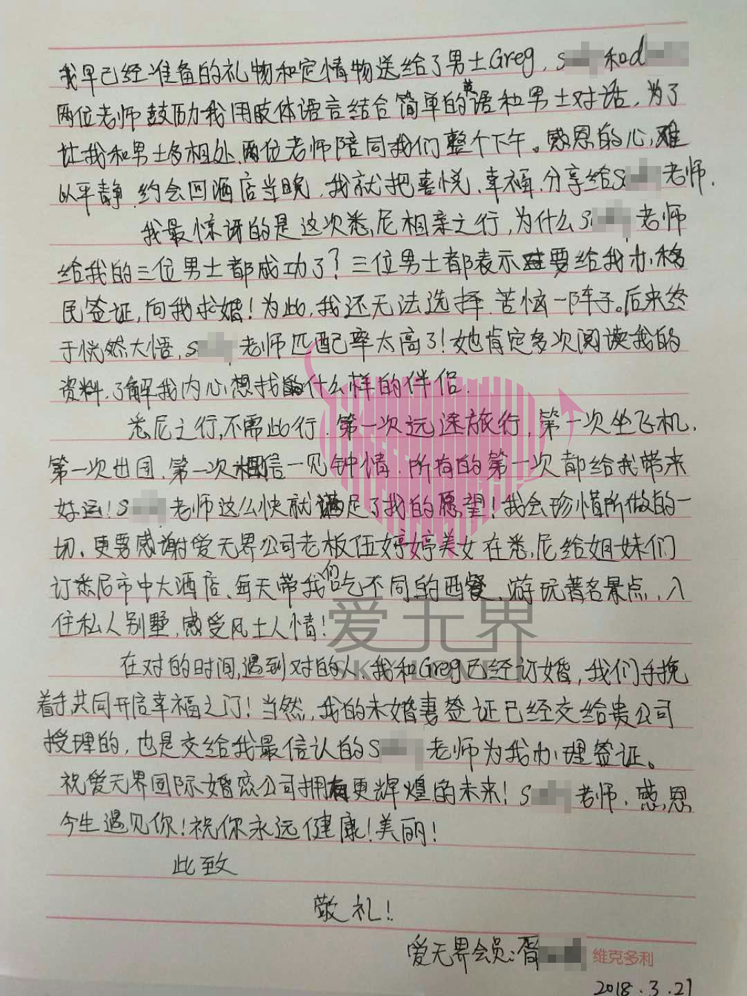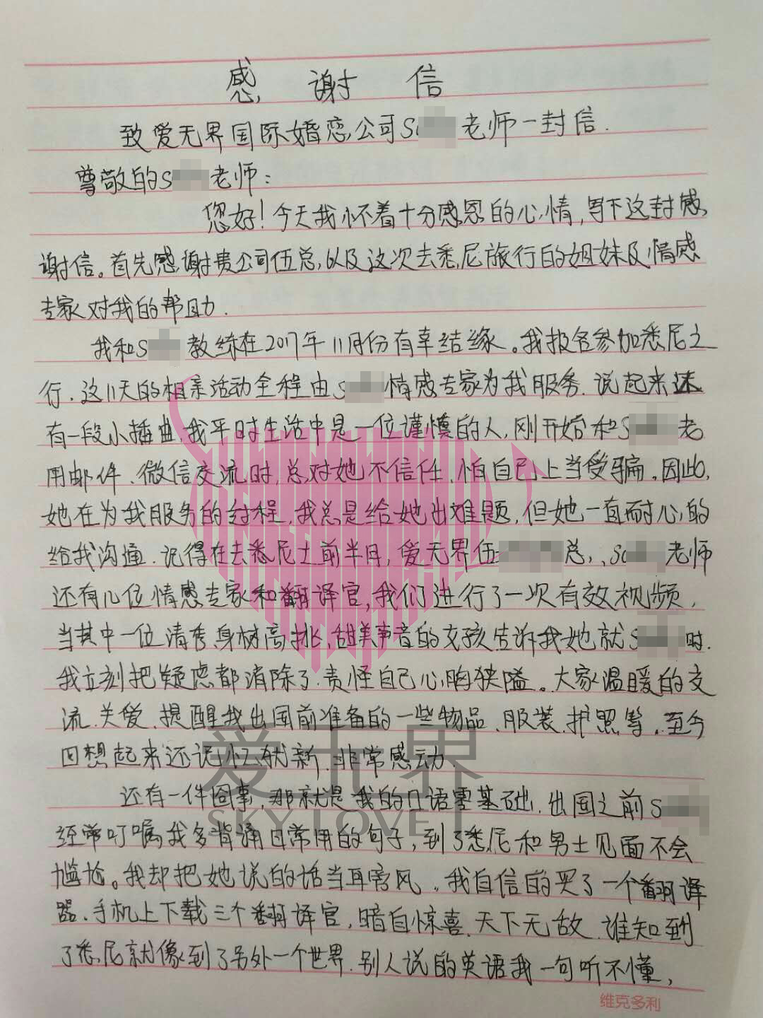 Mary写给阿里红娘的感谢信:
