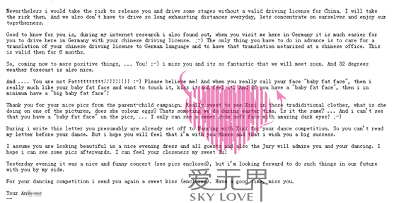 备注:男士是来自德国的项目经理,温柔善良,诚实可靠,一直与女士保持着每天一封信的习惯,彼此心意相通,目前女士已经与男士正在见面中了,两人开始了她们的幸福之旅。