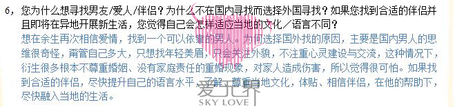 2017年11月6日经过谨慎的了解和理智的思考,最终选择阿里红娘来帮助自己寻找姻缘。填写入会调查问题时,Monica是这样回答的:
