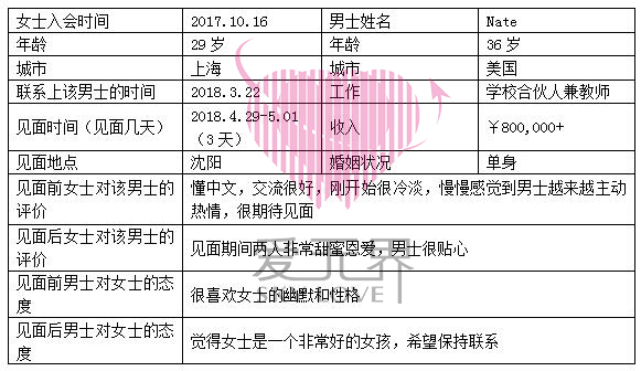 自此以后,两人的交流话题慢慢的多了起来,越聊越投机。Nate感觉遇到了知己,对冯女士也非常热情,每天都与冯女士分享自己的生活和工作的点点滴滴,敞开心扉的交流,让两颗心逐渐拉近。冯女士经过以往与其他西方男士见面积累的经验,深知见面对一段感情发展的重要性,也希望通过见面来确认彼此的感觉,以及确定一段关系,于是与Nate商量着在沈阳见面。