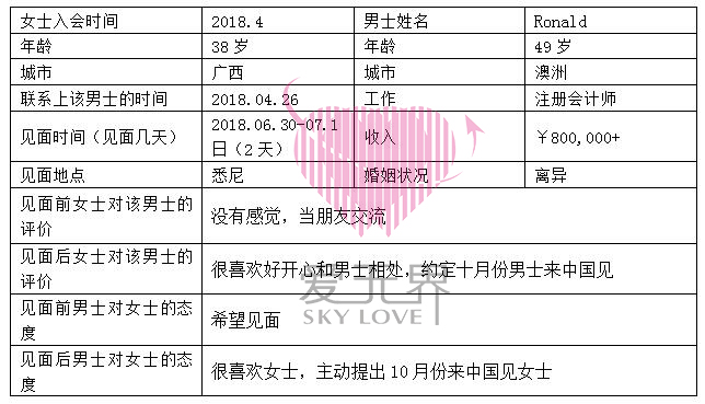 2018年6月Angelia参加了由阿里红娘国际交流中心举办的悉尼非凡爱之旅活动,实现自己早已期盼的身心远足的旅行,还能看看世界、交交朋友、遇见爱情。