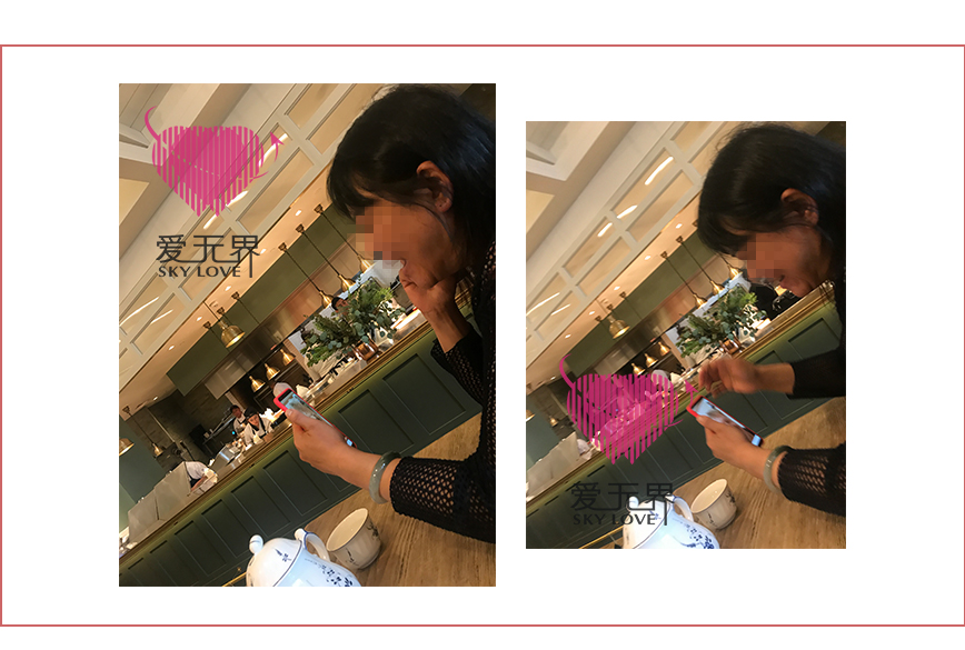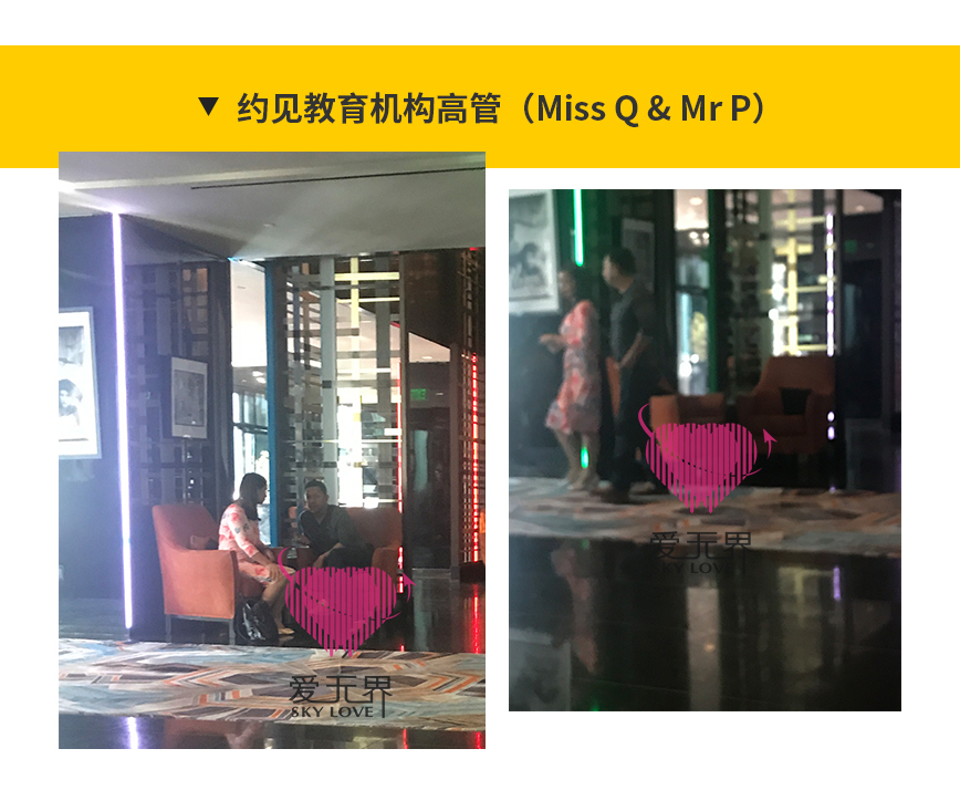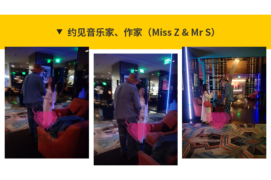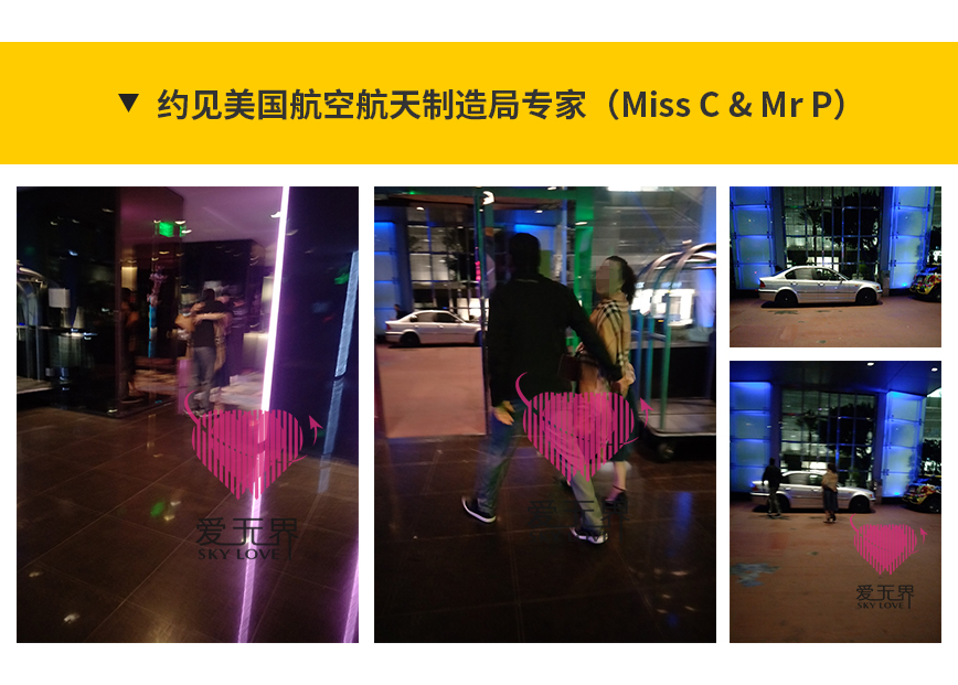 男士P今年54岁,是美国航空航天制造局专家,随和热情的男士在酒店大堂一看到女士便顾不得别的,激动大声的喊:“Hello C”。两人紧紧的相拥在一起,全然把附近来往的人都忽略了,仿佛世界只有我和你!