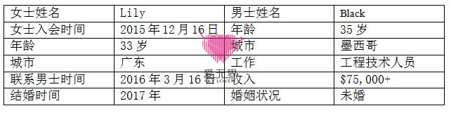 Lily入会后不久,在阿里红娘服务组安排下联系了多位男士,Black便是其中之一,随着交流慢慢深入,男士对女士的爱意只增不减,想要见到女士的想法也一天比一天强烈。