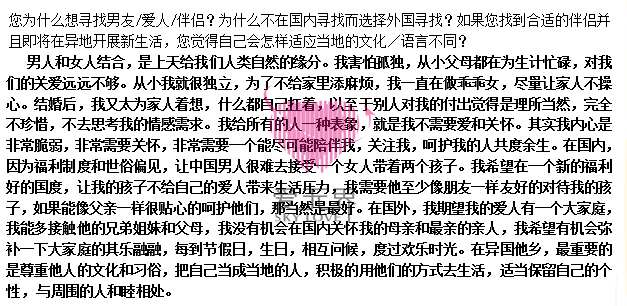 从事外贸的工作让她有机会接触很多外国男士,她明白,国内很多男士会介意她的情况,并不会给她真正的家庭温暖,相反,国外的男士在婚姻里更看重彼此的感情,而不介意过往,黄女士决心走跨国交友,并在对比筛查之后找到了阿里红娘国际交友。她,想给孩子一个温暖的家。