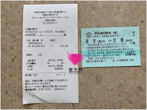 为了和男士汇合,女士也早早的就买了京新干线的票