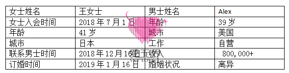 2018年12月16日,当翻译老师在平台上了解到Alex来自美国,是一位退役军人,现在自营汽配生意,3月份计划去日本度过自己的生日,阿里红娘服务组很快就决定把资源分配给王女士私聊。