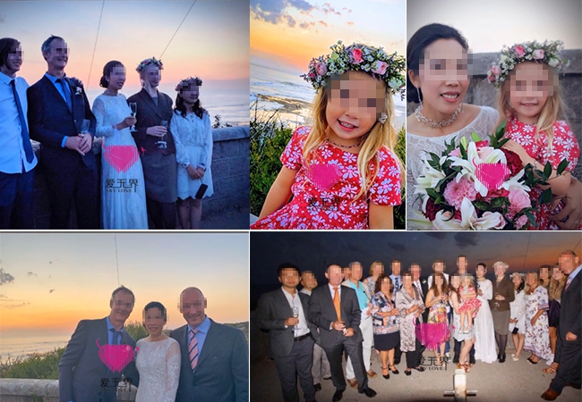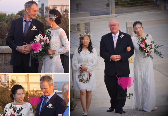 3月25日,王女士和Pat登记结婚啦!王女士穿着白色长裙,手拿捧花,缓缓入场,Pat身穿深蓝色帅气西装,深情凝望如此美丽的王女士,Pat和王女士的家人及朋友都到场,一起见证两人的爱情。