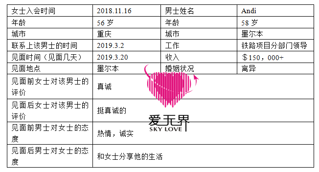 11月恰好女儿放暑假,彭女士和女儿一起去墨尔本游玩,阿里红娘服务组得知女士的行程安排之后,很快联系在当地的男士,Andi就是其中一个男士。
