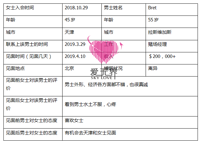 就在这时,美国男士Bret出现了,相识的过程很简单,男士主动在阿里红娘平台上和Lucy发送消息,他告诉女士自己很喜欢中国文化,只要有假期就会来中国旅游,他期望能寻觅一位中国女性作为伴侣,希望能来中国和Lucy有一个浪漫的约会。