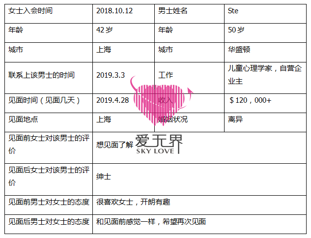 Ste来自美国华盛顿,他是一名儿童心理学专家,同时经营着自己的公司,事业上理性睿智的他喜欢享受生活,经常去世界各国旅行。几个月前他来中国旅行,对中国的印象很深很好,让他萌发找中国妻子的想法。