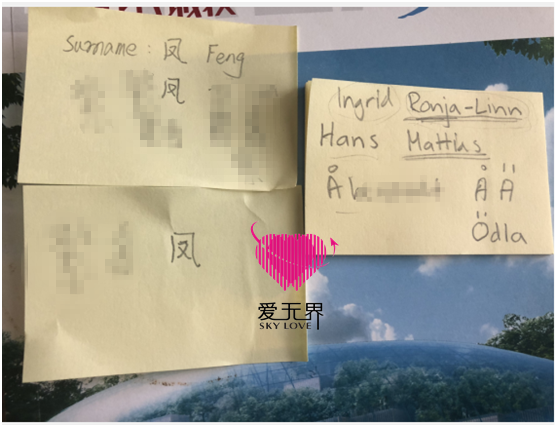 7月27日,经过短暂的休整,他们开始互相教彼此写自己的名字,Matti教小凤自己的瑞典名字写作和发音,小凤教Matti自己中文名字的写作和发音,他们都很专注地用笨拙的双手写着自己从未接触过的文字,这一笔一划,誓要把对方刻进自己的心底。