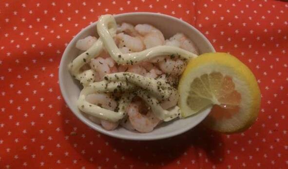 晚上Simon给郑女士做的宵夜点心-鲜虾仁沙拉