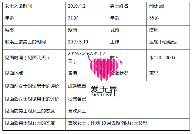 Michael知道Judy的情况之后,丝毫不介意Judy有个年幼的儿子,反而经常让Judy分享儿子的照片。他非常喜欢Judy和她的儿子,希望将来一起在澳洲生活。Judy越来越觉得Michael是自己可以依赖的人,他们相约7月25日在香港见面。