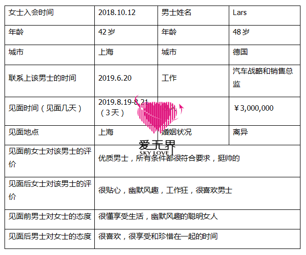 果然,来到阿里红娘以后,Jing凭着自己的优势,一直积极配合阿里红娘的专业团队,桃花朵朵开,基本每个月的日程都有和男士见面这一项,累并幸福着。这一次,她遇见了来自德国的男神Lars。