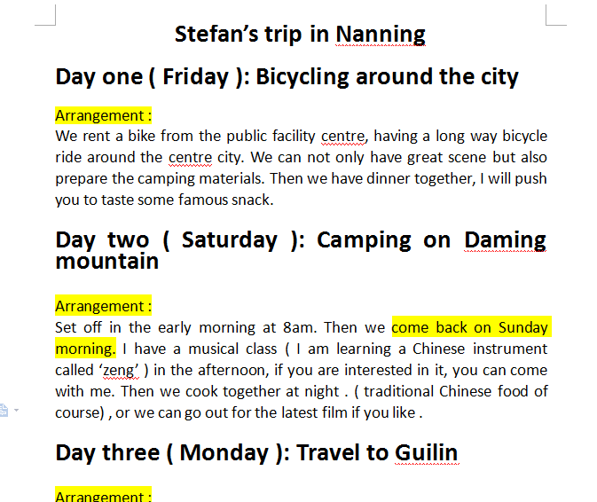 这是杨女士为Stefan安排的行程表
