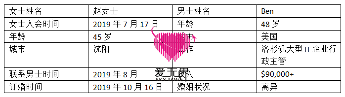 从那短暂的相处中,赵女士真实地感受到,Ben是一个非常优秀的男士,家庭非常和睦,工作再忙也亲力亲为去教育和照顾自己的孩子直到孩子上大学,这一特质正是赵女士一直追求的,她开始被Ben吸引了。
