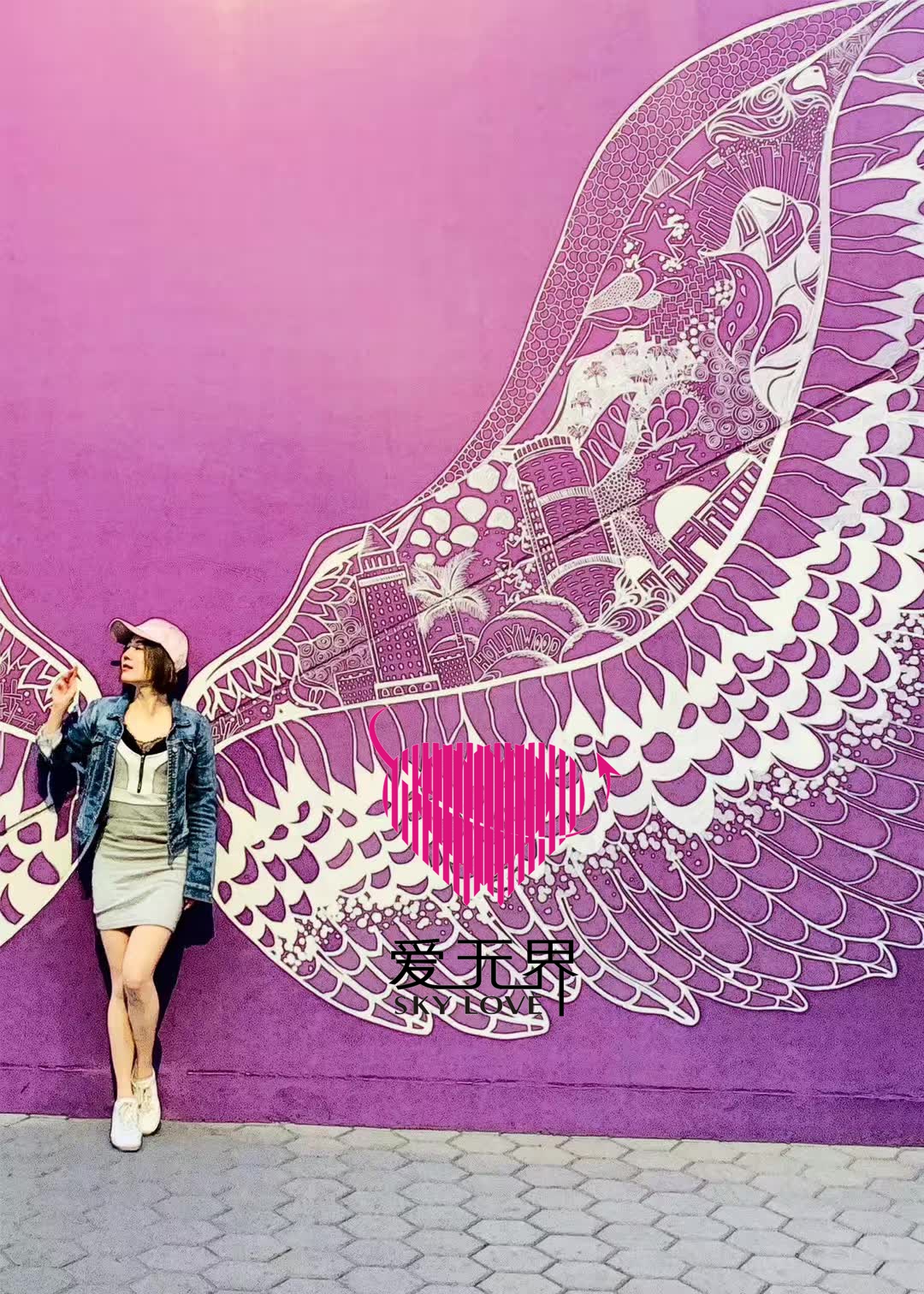 参观洛杉矶melrose超街网红墙,这里时常会更新各式各样的墙面图案,怎么摆拍都好看。