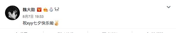 纵观魏大勋最近的动态可以看出,魏大勋周身都泛起粉红色的泡泡,在七夕当天,魏大勋在个人社交平台上发文喊话称:祝xyy七夕快乐。