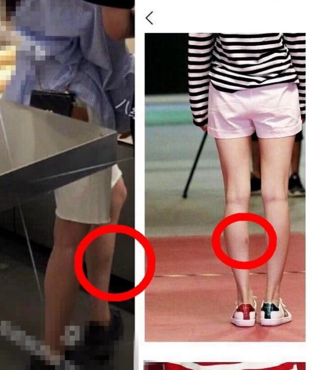 这位网友还深扒出该女生疑似是 杨幂 ,原因是该神秘女子后腿上的伤疤和杨幂曾经的伤疤在同一位置上。