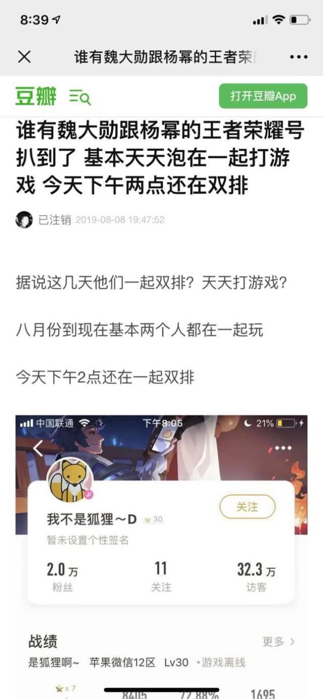 以上种种细节,似乎都在告诉大家:杨幂跟魏大勋一起了!好笑的是,就连“开口中”的应采儿,也曾预言过大勋跟大幂幂的“恋情”,被网友认证为“圈内人都知道他们的事”。件事发酵之后,只有魏大勋一个人在微博回应,杨幂及其工作室保持沉默,而据杨幂粉丝透露,杨幂逛完798之后回去继续打游戏,8月9日凌晨一点多,她还在线“游戏中”。