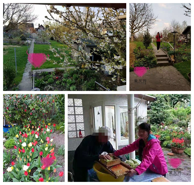 春天来临的时候,两人别墅后面的花儿也争相开放,Norbert负责安装花园的喷水装置,做一些体力活,陈姐则负责悠闲地拿着洒水管浇水,就这样,两人的花园里五彩缤纷,有花儿、有蔬菜、有果实。