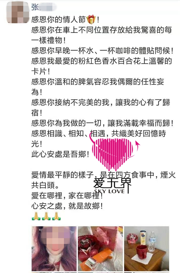 结婚前,Way是追在谈姐身后的小尾巴,一有空就追着谈姐的脚步来中国,存下了厚厚一叠的飞机票。结婚后,Way就是实打实的宠妻狂魔,自己出差谈姐一个人在家害怕,Way都连夜开几个小时的车回家陪在老婆身边;以前一个人天天在外面吃快餐,基本上不怎么带同事回家吃饭,自从娶了谈姐,就天天和自己的同事、朋友炫耀自己老婆多贤惠多漂亮、做饭多好吃,只要谈姐同意,每周都会带同事回家吃饭,巴不得全世界都知道自己的妻子有多好。