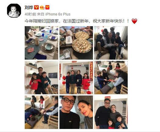 刘烨晒一家回娘家过年 竟在法国把中国传统文化传扬很到位