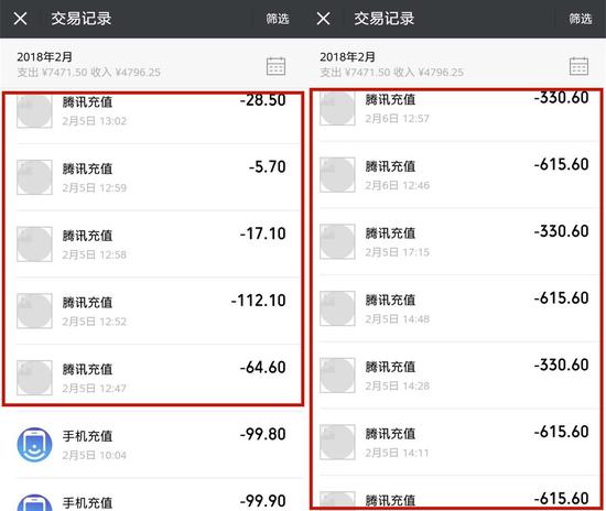 2月8日,恰逢发工资的向女士收到短信,看到数字时发现不妙:“工资卡突然少了3600多元”。经查询,她发现3600元的转出记录集中在2月5日和6日两天。看到转出明细上写着“腾讯充值”,她才恍然大悟。由于担心银行卡继续被扣钱,当时她就把银行卡注销了。事后向女士跟儿子询问起扣费的事,发现儿子毫不知情和感到“莫名其妙”。