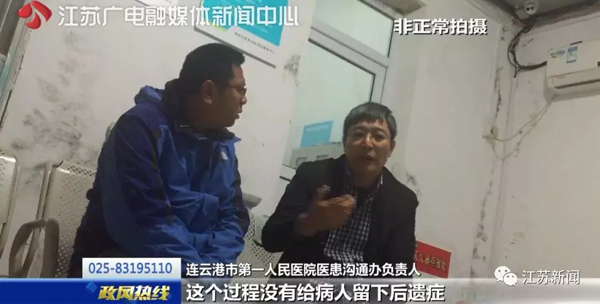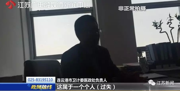 随后,记者陪同当事人来到了连云港市卫计委医政处反映此事。连云港市卫计委医政处负责人表示对医院的处罚会很难,因为郭女士最终没有很严重的后果,医疗过失属于当班护士的个人行为,无法进行行政处罚。