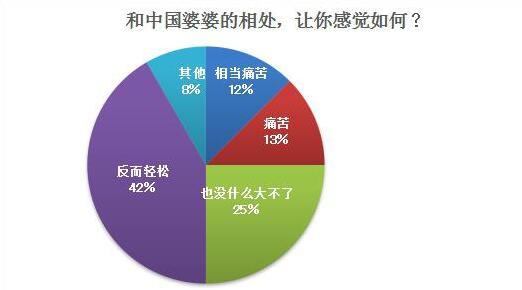 从回收到的有关婆媳关系的调查问卷中,人民网记者发现,虽有不少日本媳妇感到与中国婆婆相处困难,但是超半数以上的日本媳妇觉得“也没什么大不了”,甚至“反而很轻松”。现实生活中有看在媳妇是外国人的份上就宽宏大量不计较的中国婆婆,也有因听不懂婆婆的中文只好“充耳不闻”的日本媳妇。然而,因习惯与价值观不同导致的摩擦是客观存在的,而且面对婆婆又不能像面对丈夫时那样“有话直说”。即便开口想说,无奈自己中文水平不够表达又受限,所以也有日本媳妇因此感到“压力山大”。