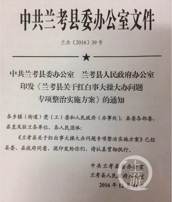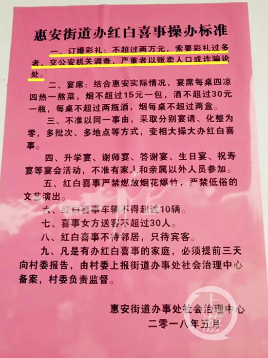 图说:河南兰考县惠安街道办引发争议的红白喜事操办标准。
