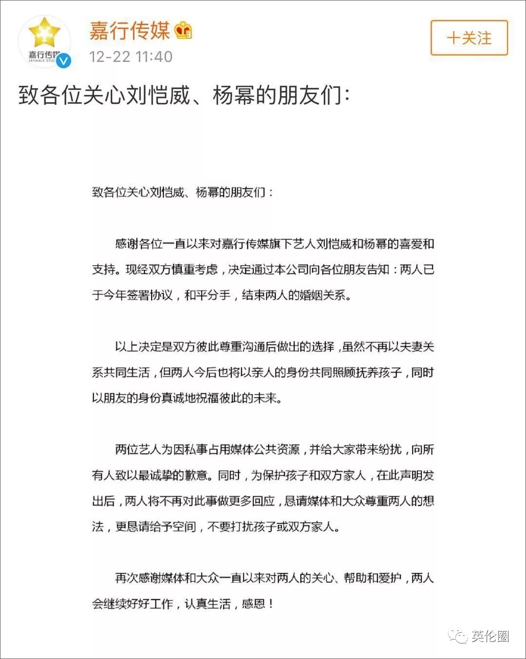 就问各位小伙伴一句:今天还有谁没被杨幂刘恺威宣布已离婚的消息刷屏的吗?