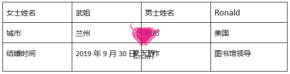 2019年9月30日,54岁的武姐和Ronald登记结婚啦!武姐单身20多年,年轻时在工厂工作,后来在药店做导购,刚刚来阿里红娘时,她说,“儿子成家了,我终于可以为自己争取爱情了。”就这样,武姐浪漫的寻爱之路开启了!她成功实现了自己的梦想!
