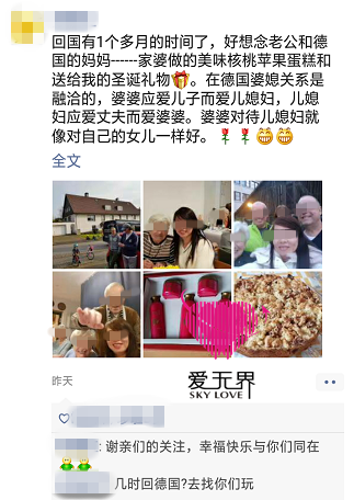 “回国已经一个多月了,好想念在德国的老公和妈妈。”