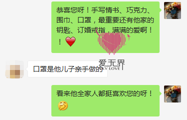 考虑到国内的天气已经逐渐变凉,这次Jimmie贴心地寄来围巾、巧克力;还有男士儿子亲手制作的口罩,这不是连家人都认定了小莹姐的节奏?最重要的是,Jimmie把求婚戒指和自己家的钥匙都寄过来了!!!!
