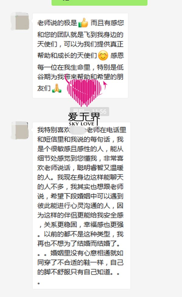 当一个女性感到自卑,认为自己不值得被爱时,进入任何一段关系中她都不会开心。情感老师就一步步引导罗刘女士从内心深处认可自己,这样在情感上才更能有自己清晰的想法。但是经过多次的交流后,刘女士的心态慢慢地调整过来了,很积极地配合。在刘女士眼中,情感老师就像是天使,给低谷期的她带来了希望,也让她的择偶观变得更清晰。对于刘女士而言,这就是一种无比珍贵的成长。