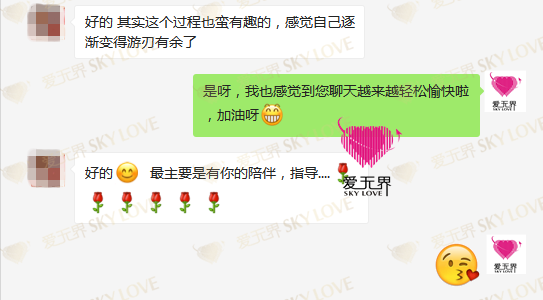 加上苏女士心态积极,对于情感老师传授的交流技巧常会主动学习。经过一段时间的实践,苏女士在和男士交流的时候确实变得游刃有余了,聊天轻松有趣,男士对她也更加热情。掌握了聊天技巧的苏女士,猛然发现根本就不可能存在什么无话可说的,只会振臂高呼相见恨晚呀。