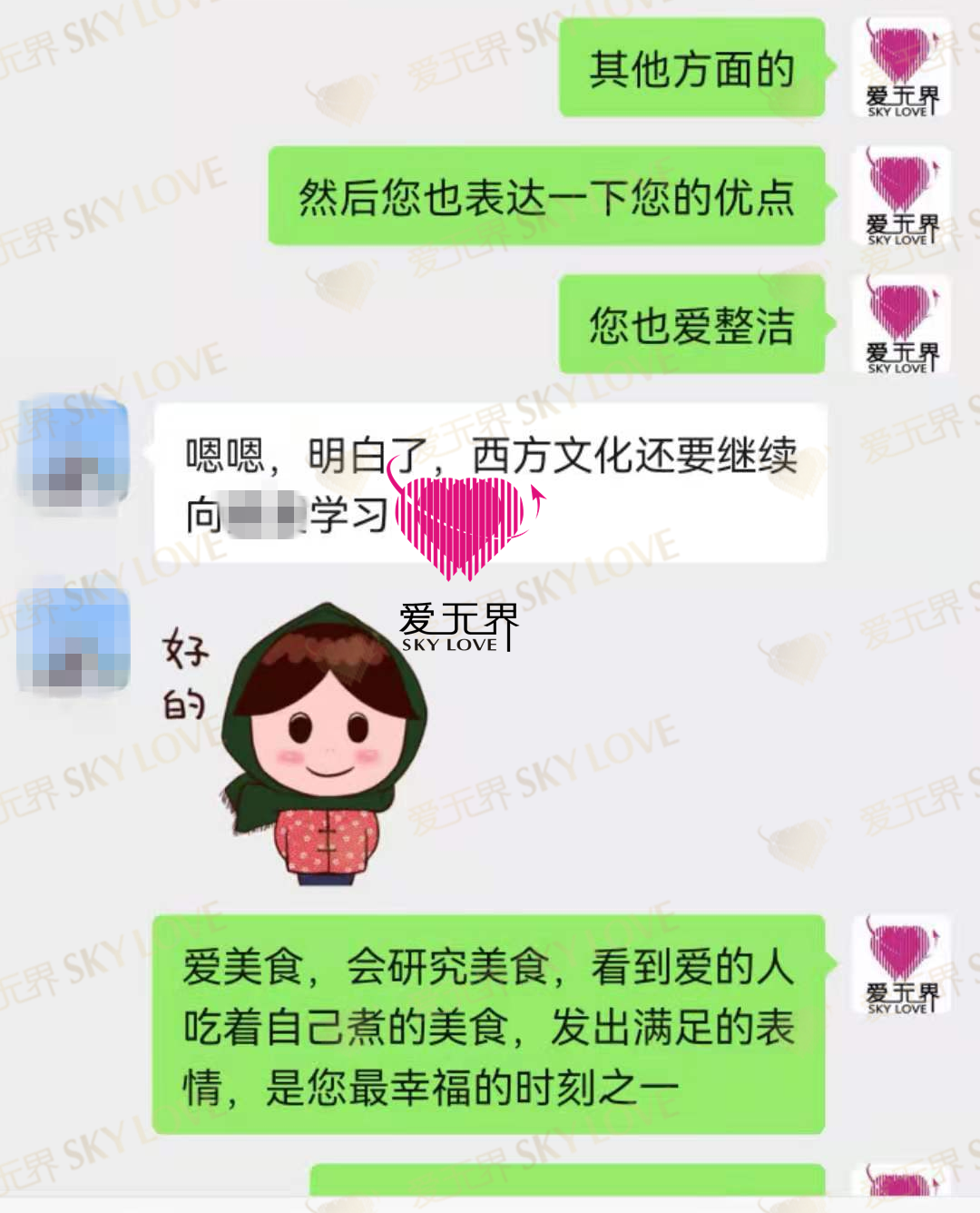 两人交谈发现对方是不错的人,如果有想要继续往下发展的念头,那就会想更了解对方深层的东西,比如会员郑女士就遇到这个难题。西方人注重私隐,直接询问会让他们感到冒犯,情感老师建议她先把自己的爱好、日常生活等先展示给对方,通过这样的方式可以增加相互的接纳和信任感,从而达到相互了解的目的。