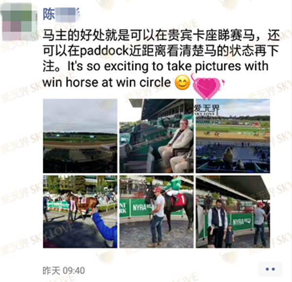 陈姐说,她现在的生活是她来阿里红娘之前不敢想象的。她不仅早就融入了当地的生活,英语每天享受着丈夫的宠爱,而且周末丈夫带她到处逛逛,让她开阔眼界,长了见识。比如在这里,她有了入马场看赛马的体验。