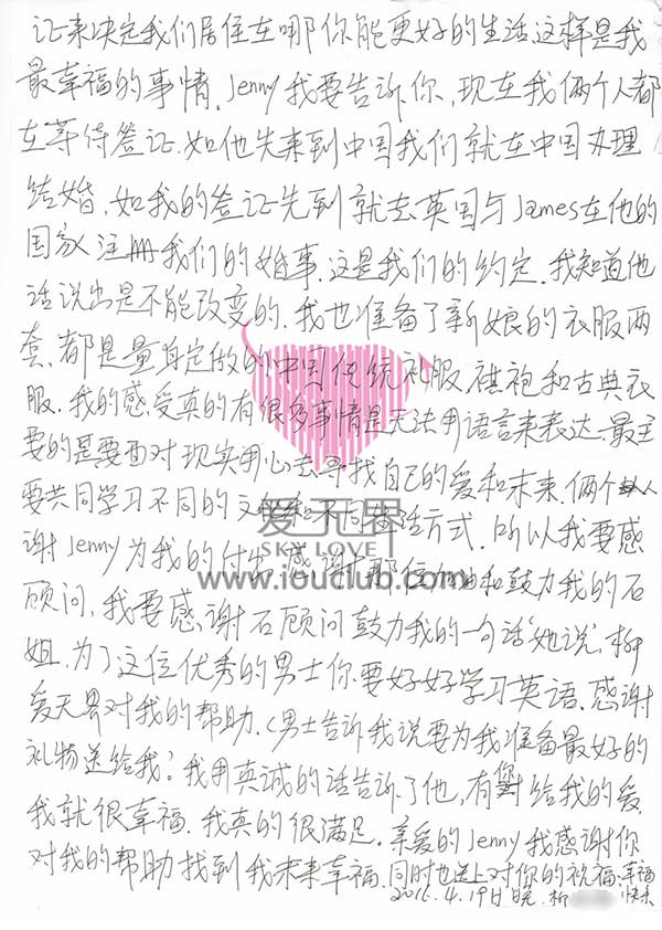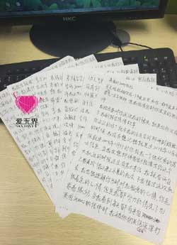 2016年4月25日,阿里红娘收到了柳姐从山东烟台寄来的信件,厚厚的七页纸,是一封给阿里红娘和服务团队的感谢信!