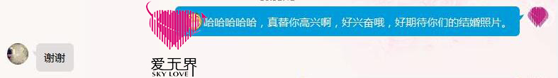 收到他们喜讯的那一刻,教练非常激动,为他们感到开心。小瑜刚入会时紧张、不善于表达,教练耐心的分析和指导下,逐渐改变,一步步的走向幸福的彼岸,回想此过程,教练不觉眼眶泛红,为小瑜掉下幸福的泪水,真心祝福他们。