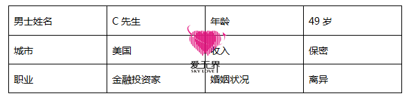 【阿里红娘男士推荐】49岁美国金融投资家想找一个中国女人,给她幸福生活