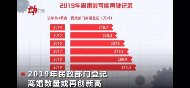 近日,民政局公布了最新一组离婚大数据,揭露了现代人的恋爱状况。2019年1-9月,全国登记离婚达310.4万对,比去年同期多出20.5万对。