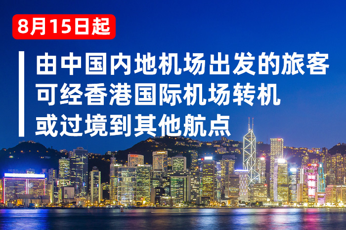 机场管理局8月13日凌晨宣布,由中国内地机场出发的旅客,于今年8月15日开始,可经香港国际机场转机或过境到其他航点。
