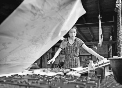 图为“95后”姑娘肖扬回家乡湖南隆回县学习传承滩头木板年画技艺。资料图