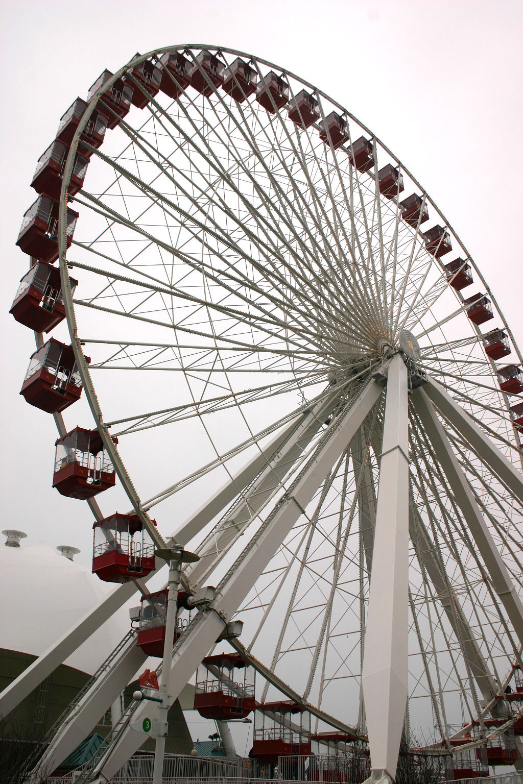 芝加哥海军码头摩天轮(Navy Pier Ferris Wheel)是如此宏大、壮丽、露天惊险且刺激。曾经乔治 法利士在这里休息了一天。(摩天轮诞生于19世纪末,最早的摩天轮由美国人乔治·法利士于1893年为芝加哥博览会设计。)