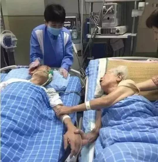 在治疗无望的情况下,爷爷选择放弃治疗,离院前,老人只有一个要求:希望能和老伴再见一面,拉一拉她的手。躺在病床上的爷爷见到奶奶后,已经无法言语,只能尽力将奶奶的身姿。