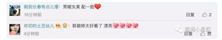 网友们也对这一对的恋情表示了十足的满意,“男暖女美,配一脸”,有的网友注意力则被郭碧婷的美貌吸引了,“郭碧婷太好看了,漂亮”。